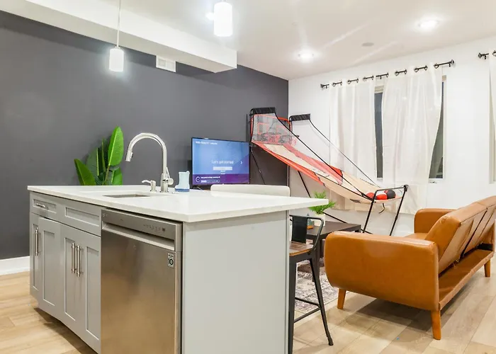 The 110 m² 3Bed3Bathwddeskwifiheating Apartment Philadelphia offers proximity to such tourist attractions as Mural, situated around 5 minutes' walk away. This 3-bedroom apartment is situated 6 km from Philadelphia, PA train station and just 200 metres from N 8th St & Berks St bus station.